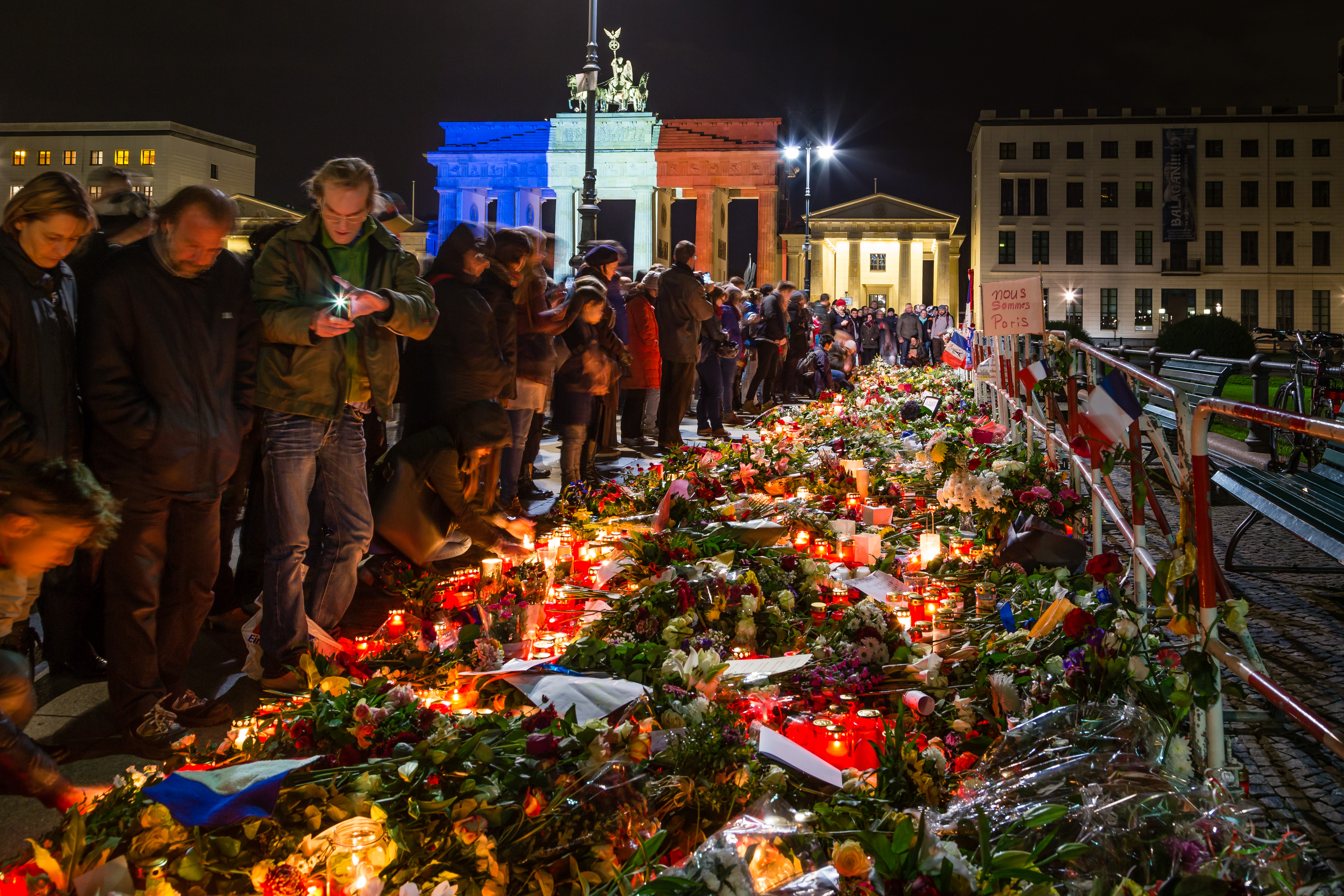 The Brandenburg Gate illuminated in the colours of the French flag – Photo: Chris Zi (CC BY-NC-ND 2.0)