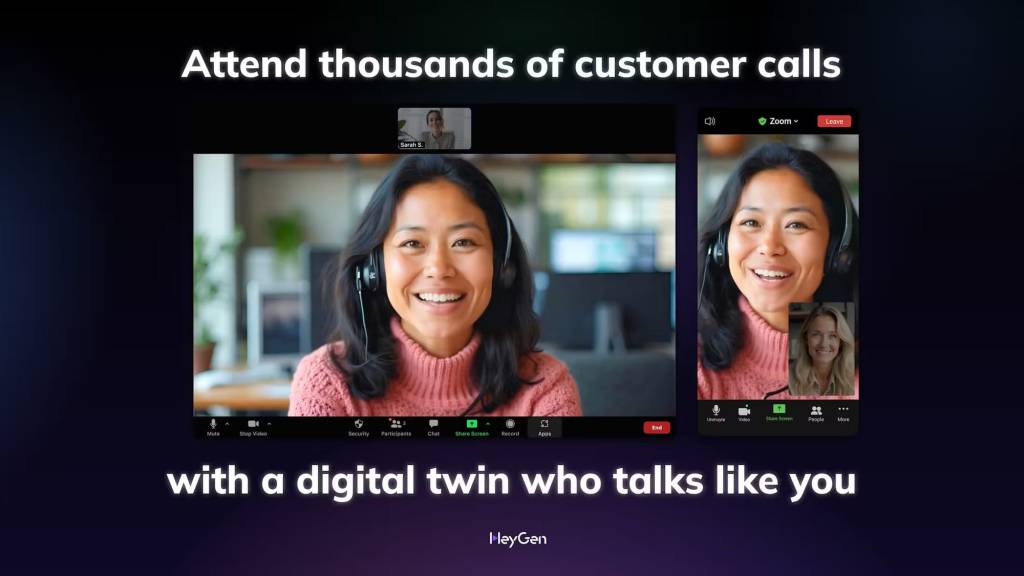 2. Zusätzlich gibt es Anbieter, die animierte oder fotorealistische Avatare für Videokonferenzen erstellen. Diese Avatare waren vor allem visuelle Platzhalter, wenn man selbst an Gesprächen teilgenommen hat, aber sich nicht per Kamera zeigen konnte oder wollte. Mittlerweile gibt es jedoch auch Avatare, die das eigene Abbild und die eigene Stimme simulieren können – sie sind digitale Zwillinge. Das Startup HeyGen wirbt damit, dass digitale Zwillinge leicht umsetzbar seien: